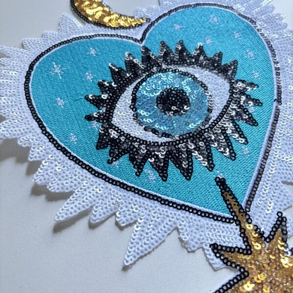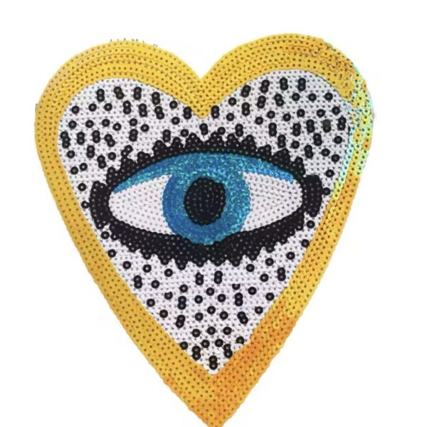 Corazón con lentejuelas, me pega con el calor de la plancha.