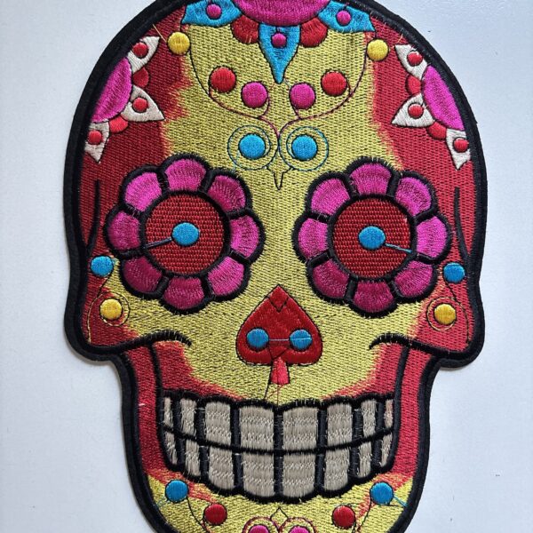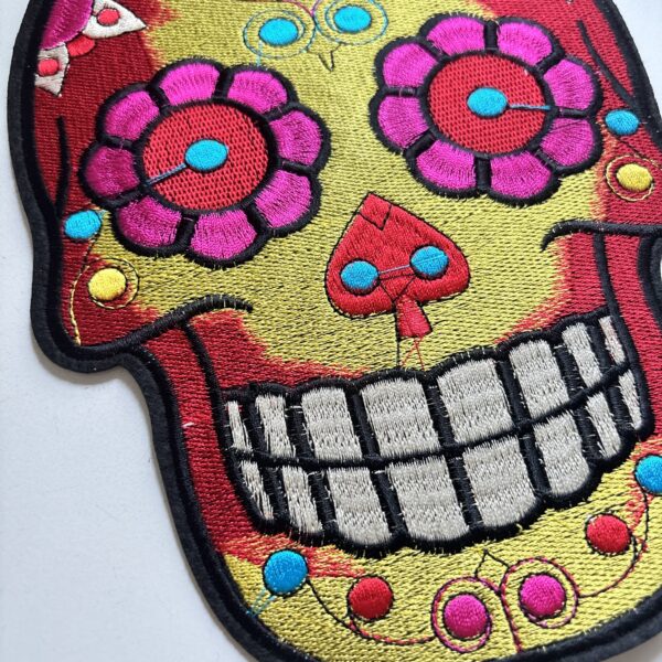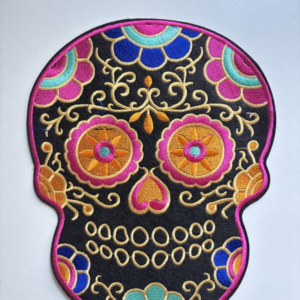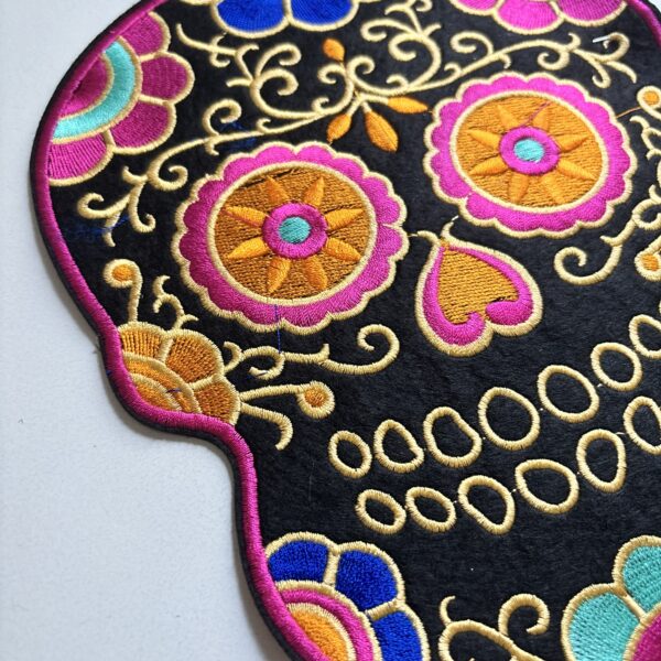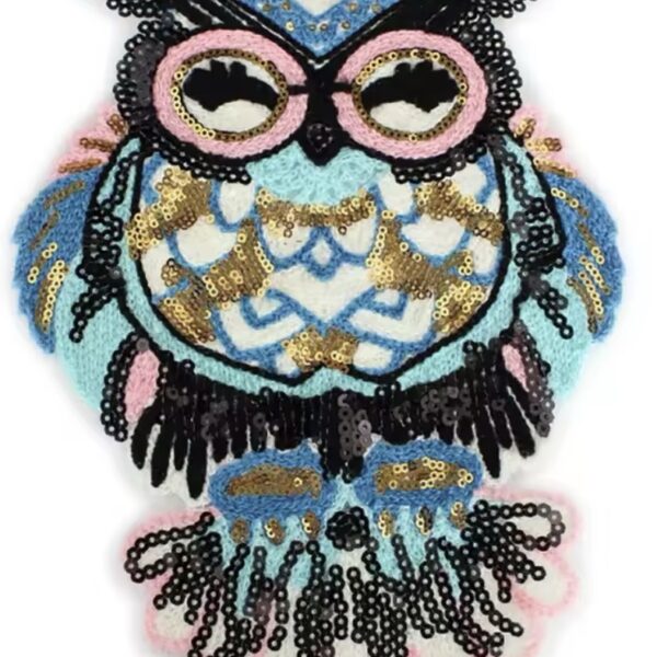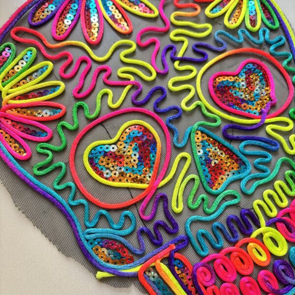 Aplique bordado con hilos, se pega con el calor de la plancha.