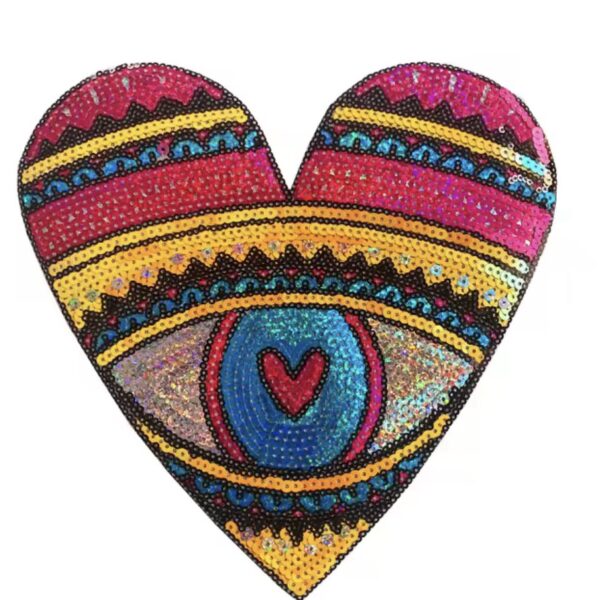 Corazón de lentejuelas, se pega con el calor de la plancha.