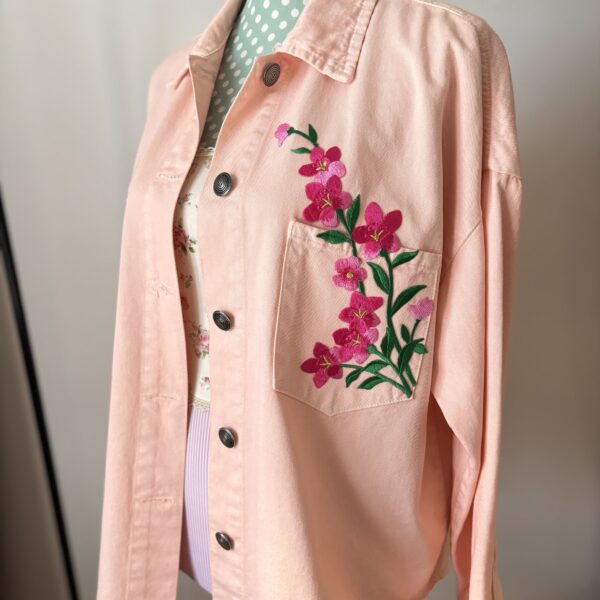 2 ramitos en espejo, flores rosas. Medidas 14 x 25 cm cada uno