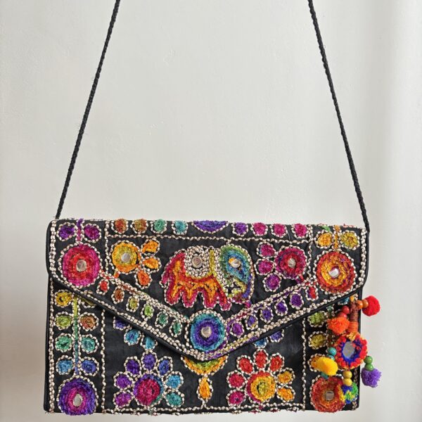 Un sobre único, bordado con hilos de colores y detalles de espejos, divinos para levantar cualquier look. Livianos, prácticos y muy BohoChic! ✨ Medidas 30 x 20 cm Hechos en India