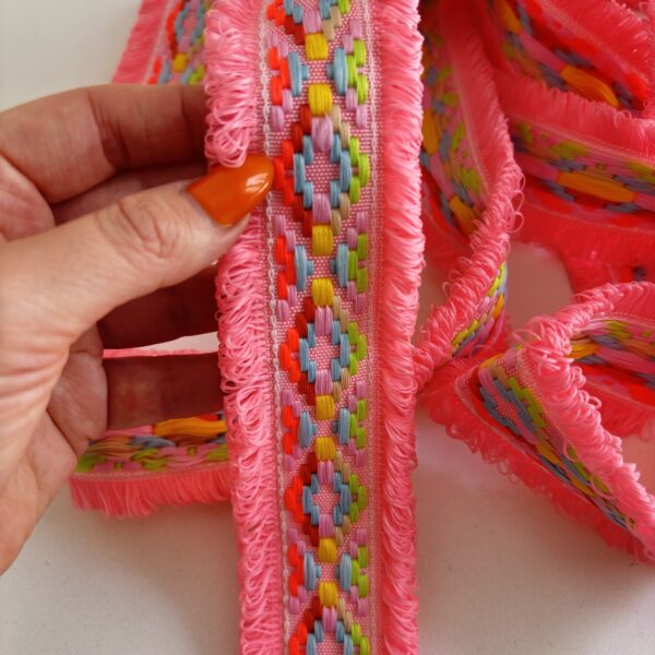 Precioso galón con fondo beige 😍 Medida 2 cm de ancho El precio es x metro En las foto te muestro como quedaría en una pollera de jean 💖