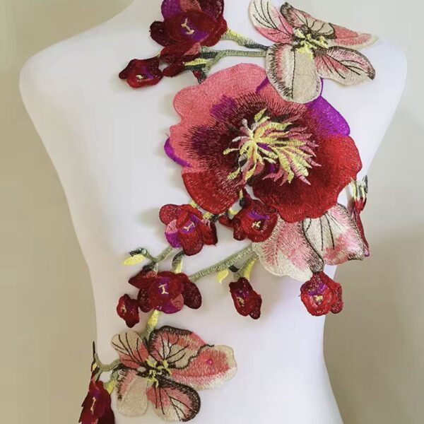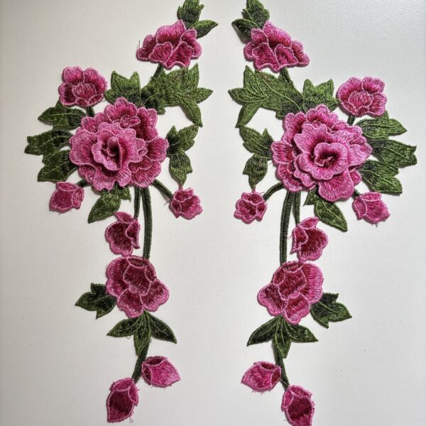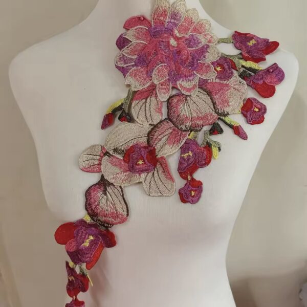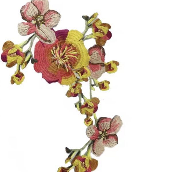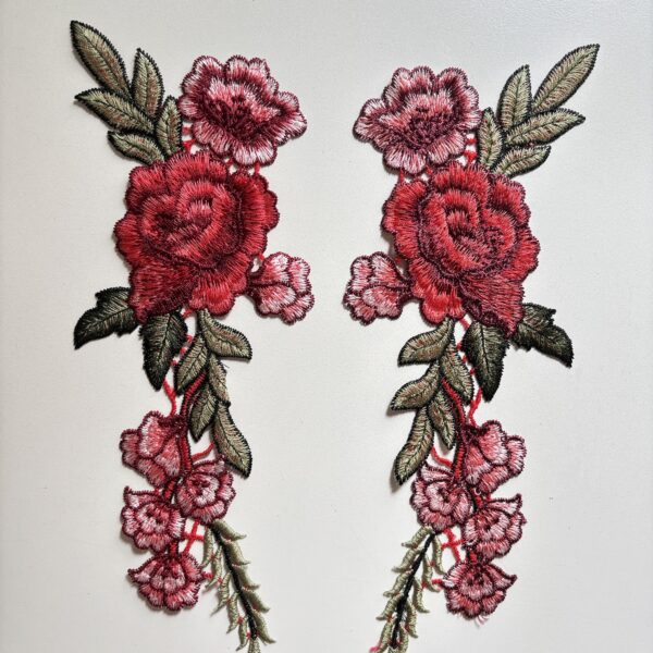 Precioso aplique bordado en hilo con rosas y pétalos con relieve. 🌟