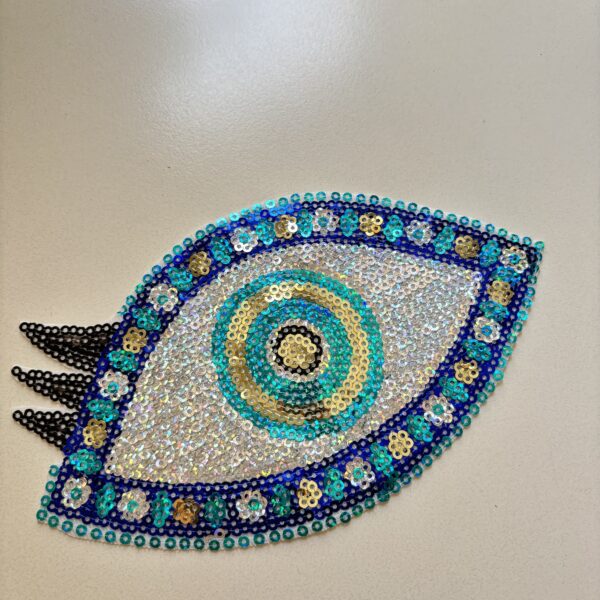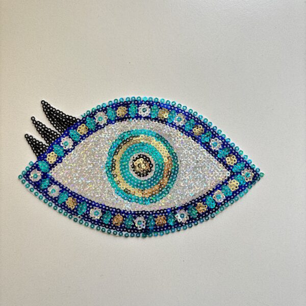 Aplique bordado en lentejuelas chiquitas, ojito con 3 pestañas!