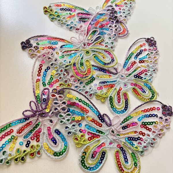 Aplique con lentejuelas chiquitas doradas y fucsias.