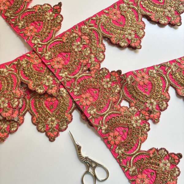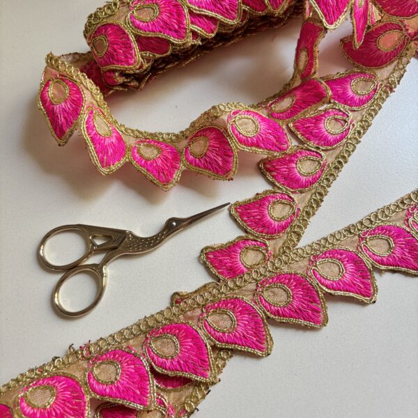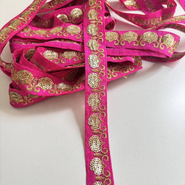 Galón color fucsia bordado con hilos dorados 🌟