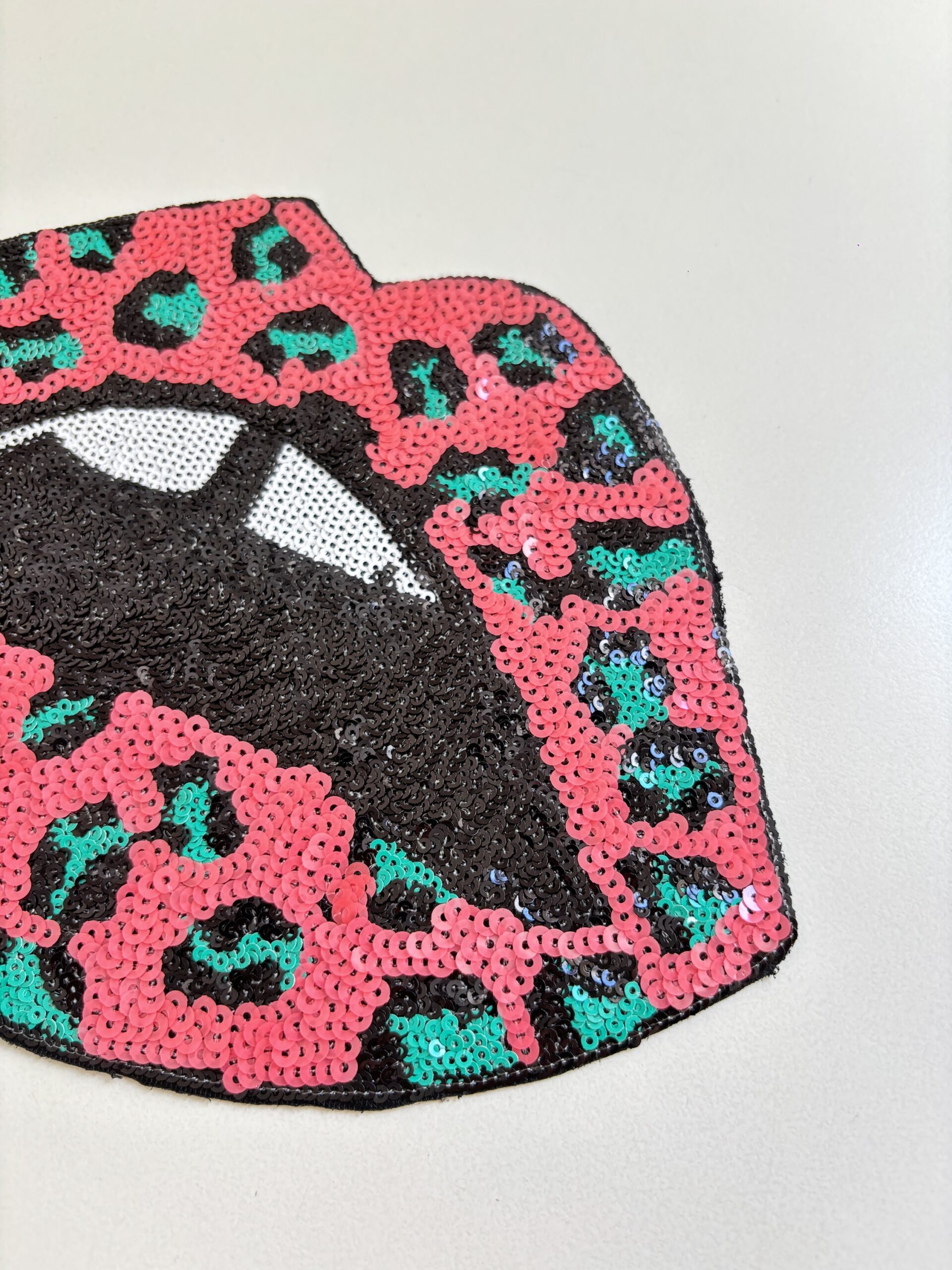 Aplique en lentejuelas, podés pegarlo con el calor de la plancha.