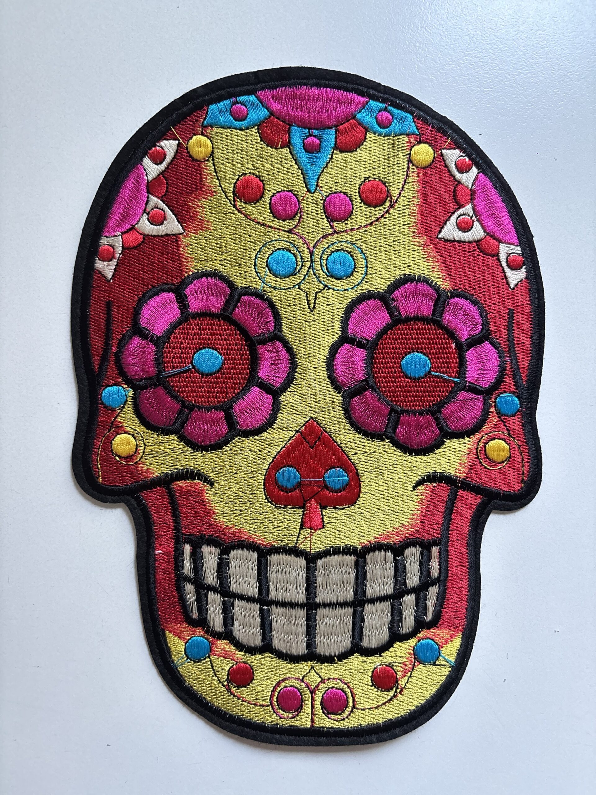 Aplique bordado en hilos, se pega con el calor de la plancha.