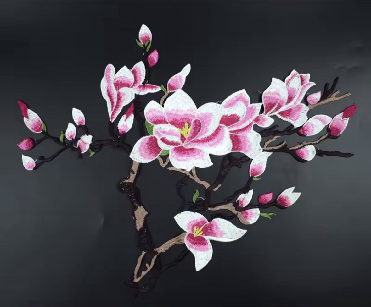 2 apliques bordados en hilo.