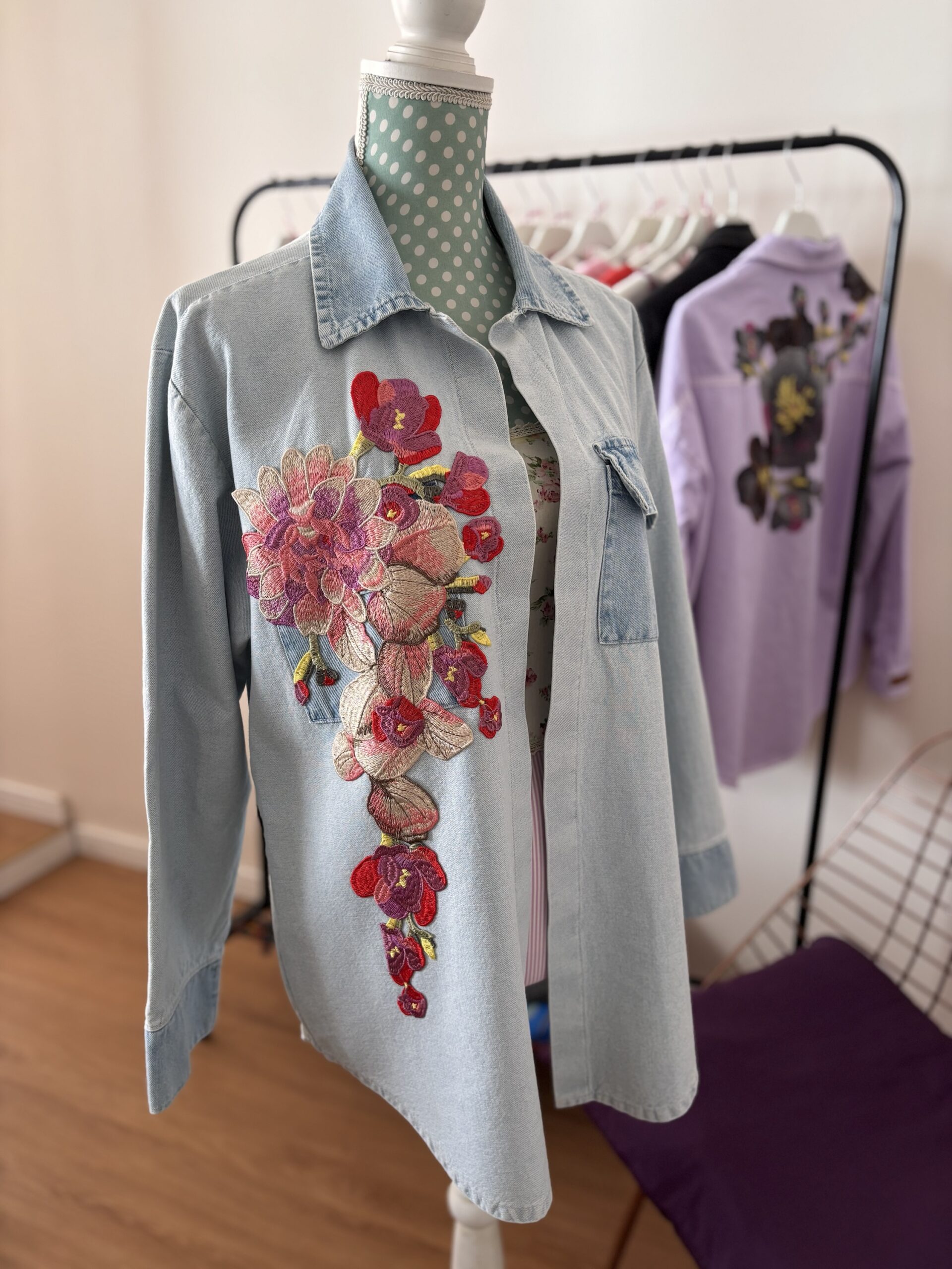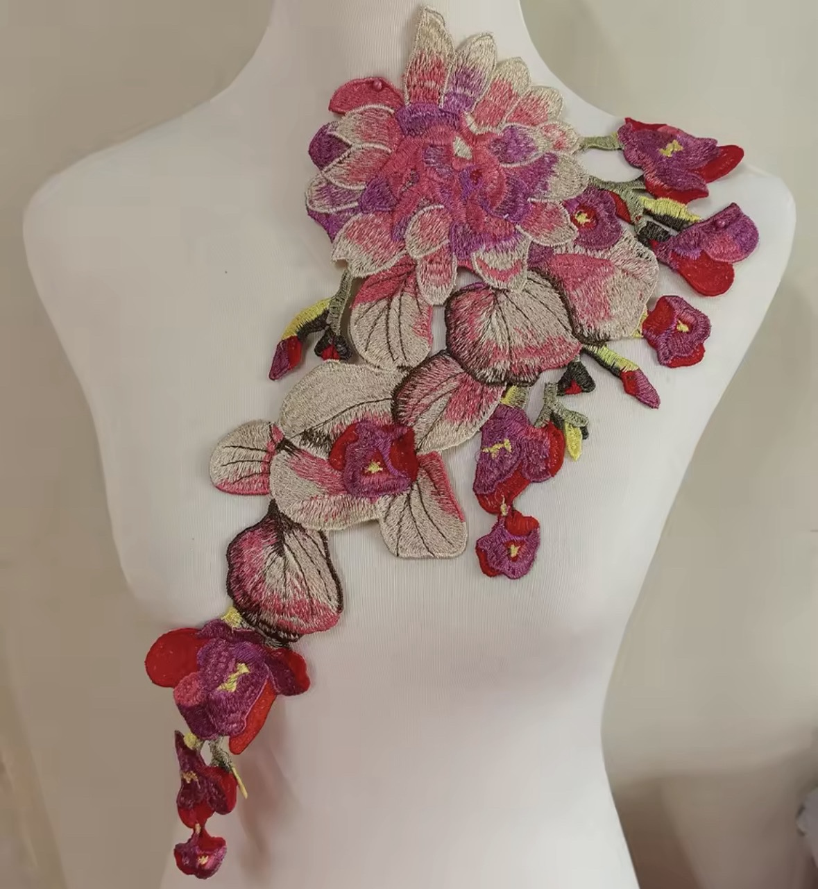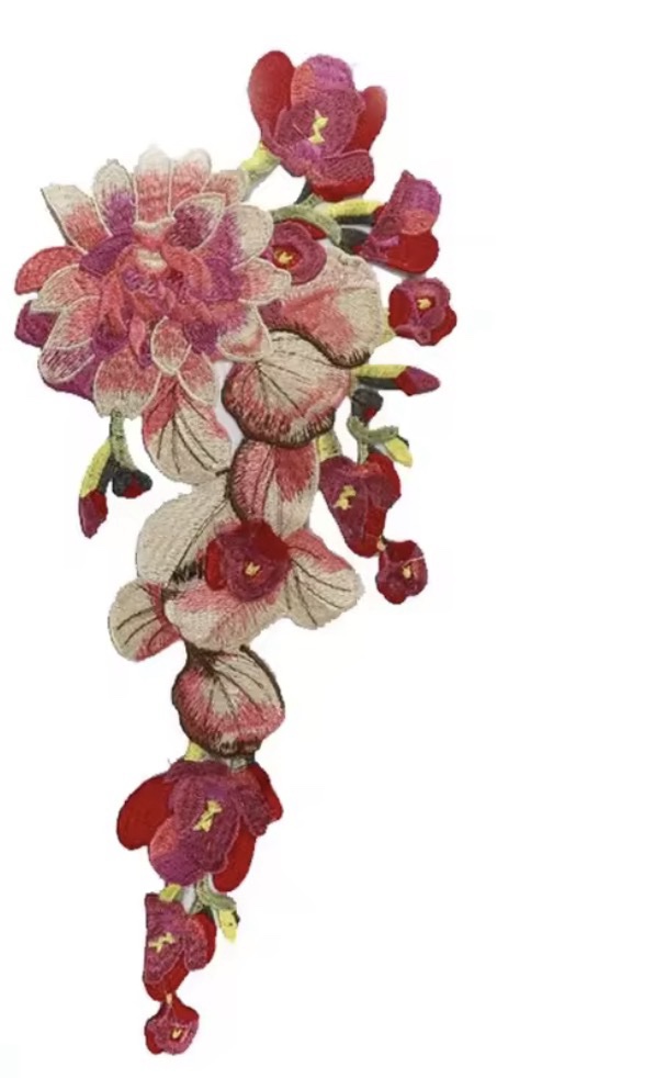 Aplique de flores bordadas en hilo.