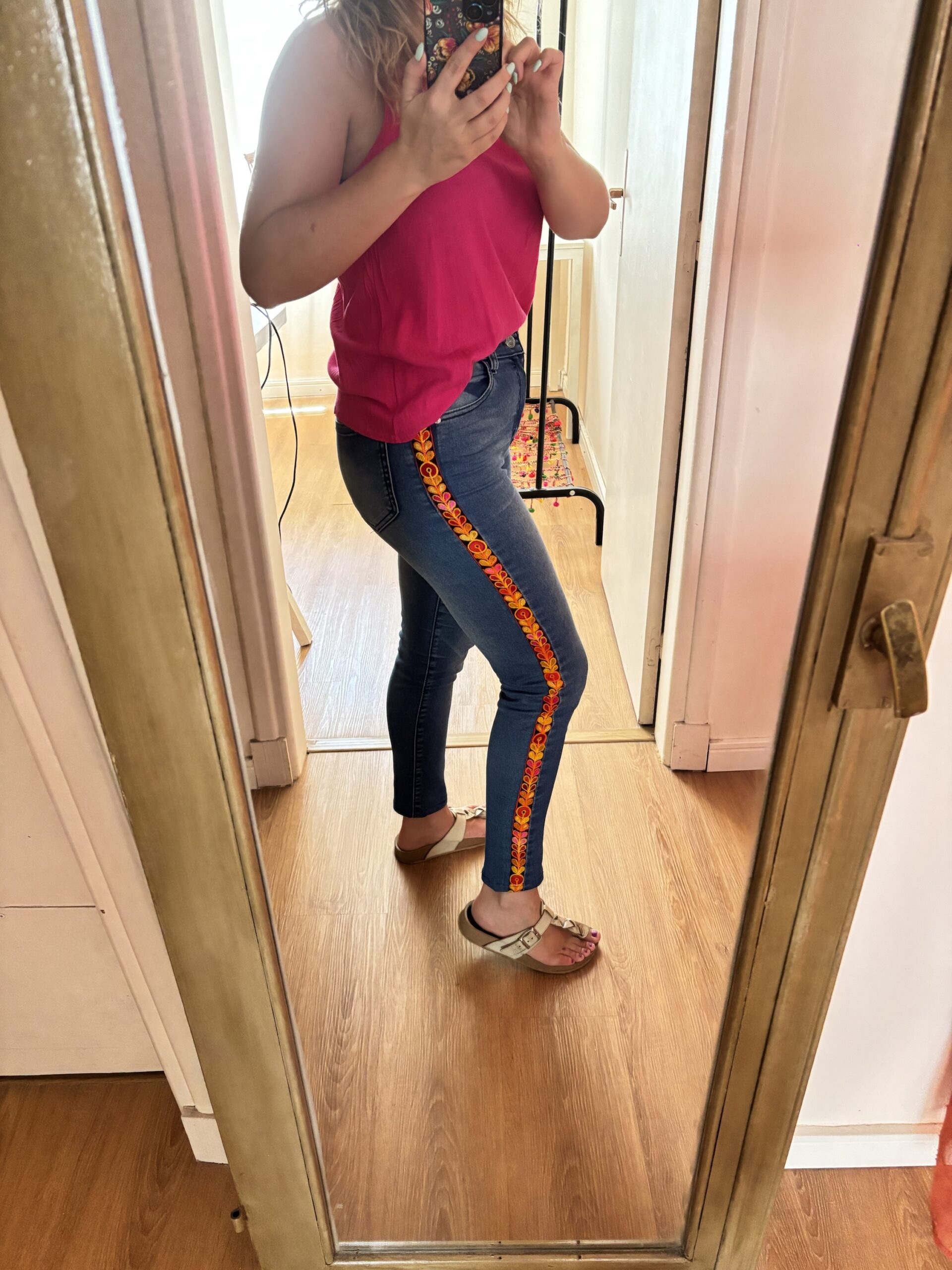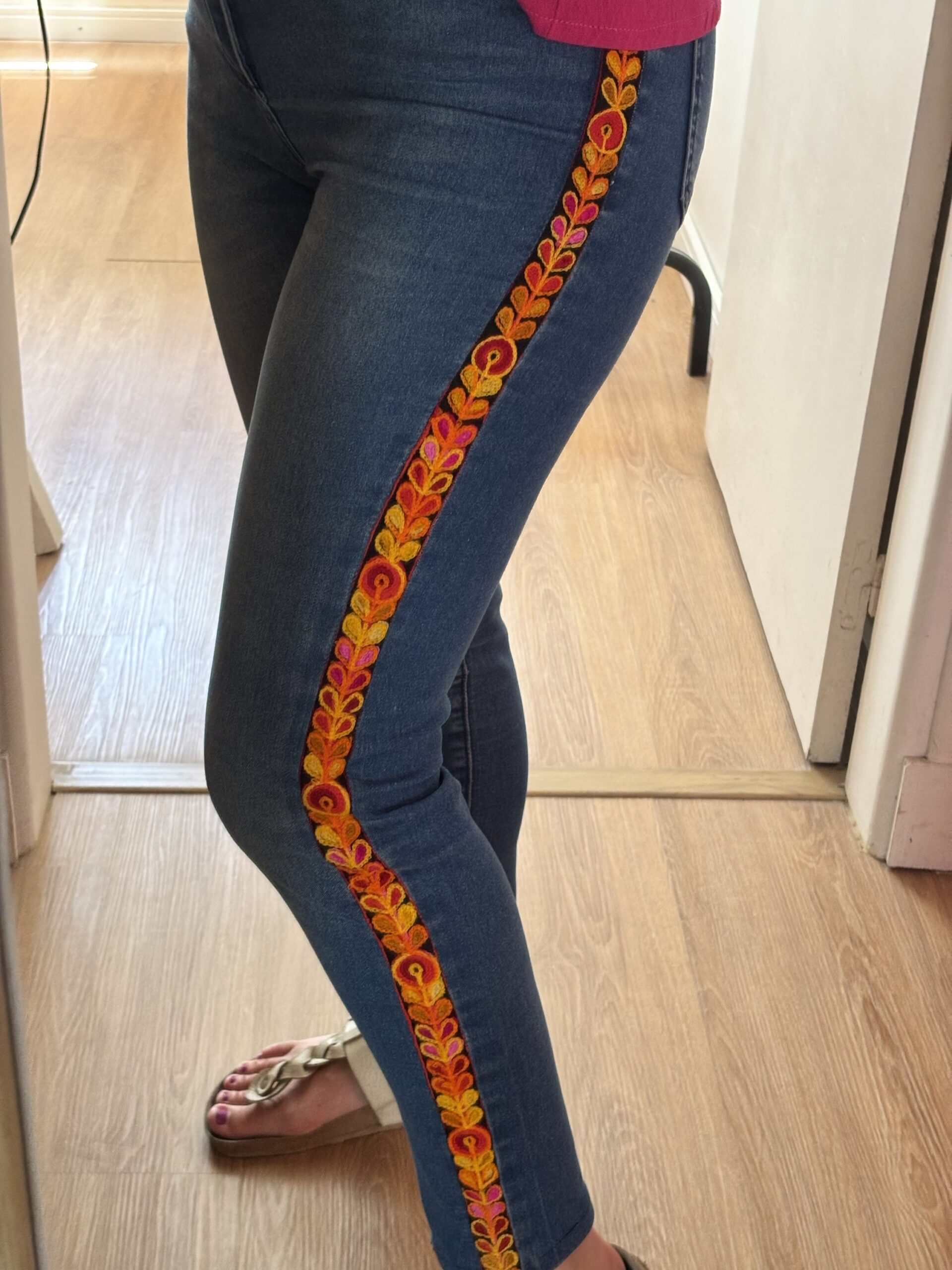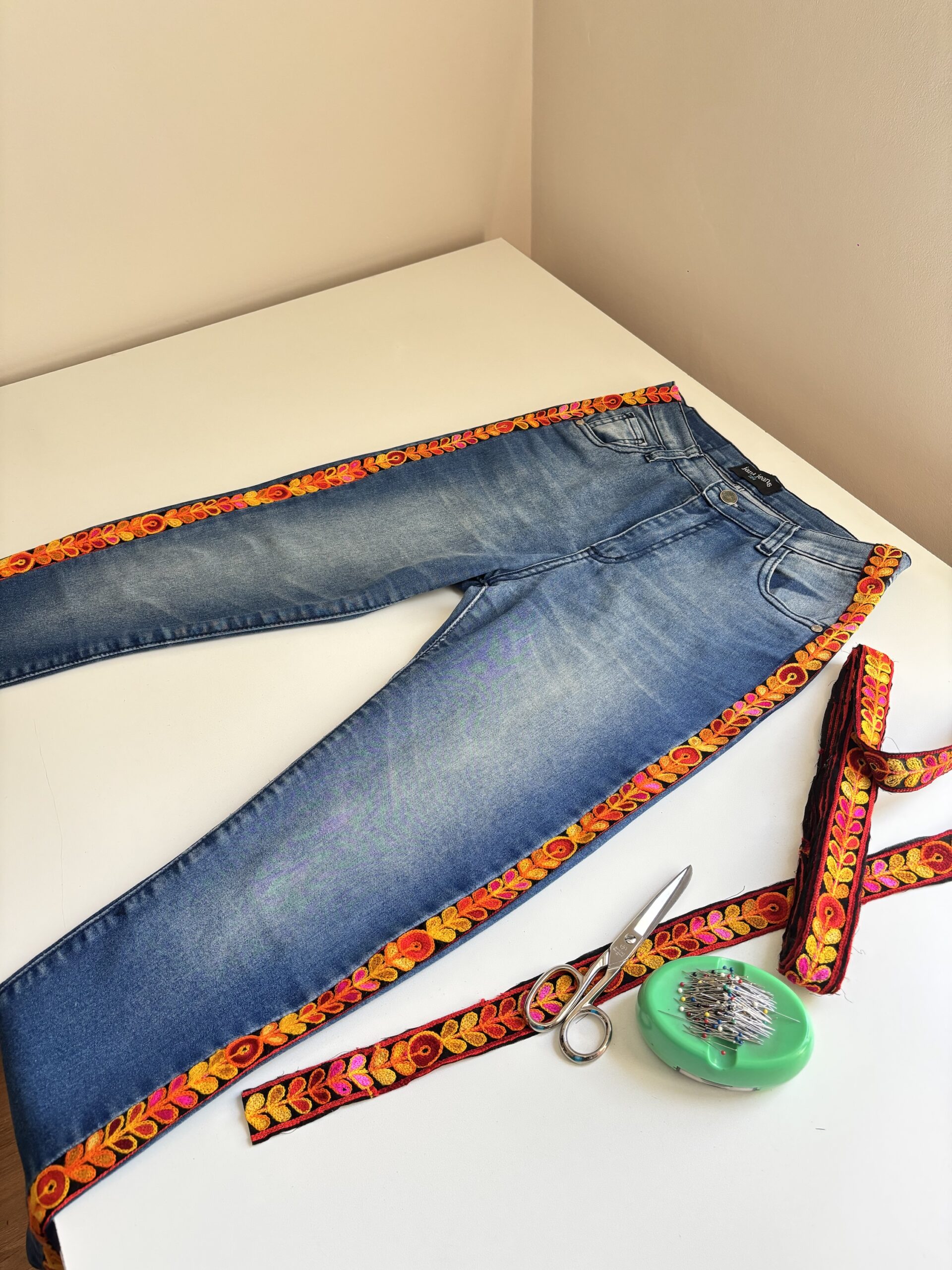 En la fotos te muestro como me agrandé un poquito un jean 🤩🌸