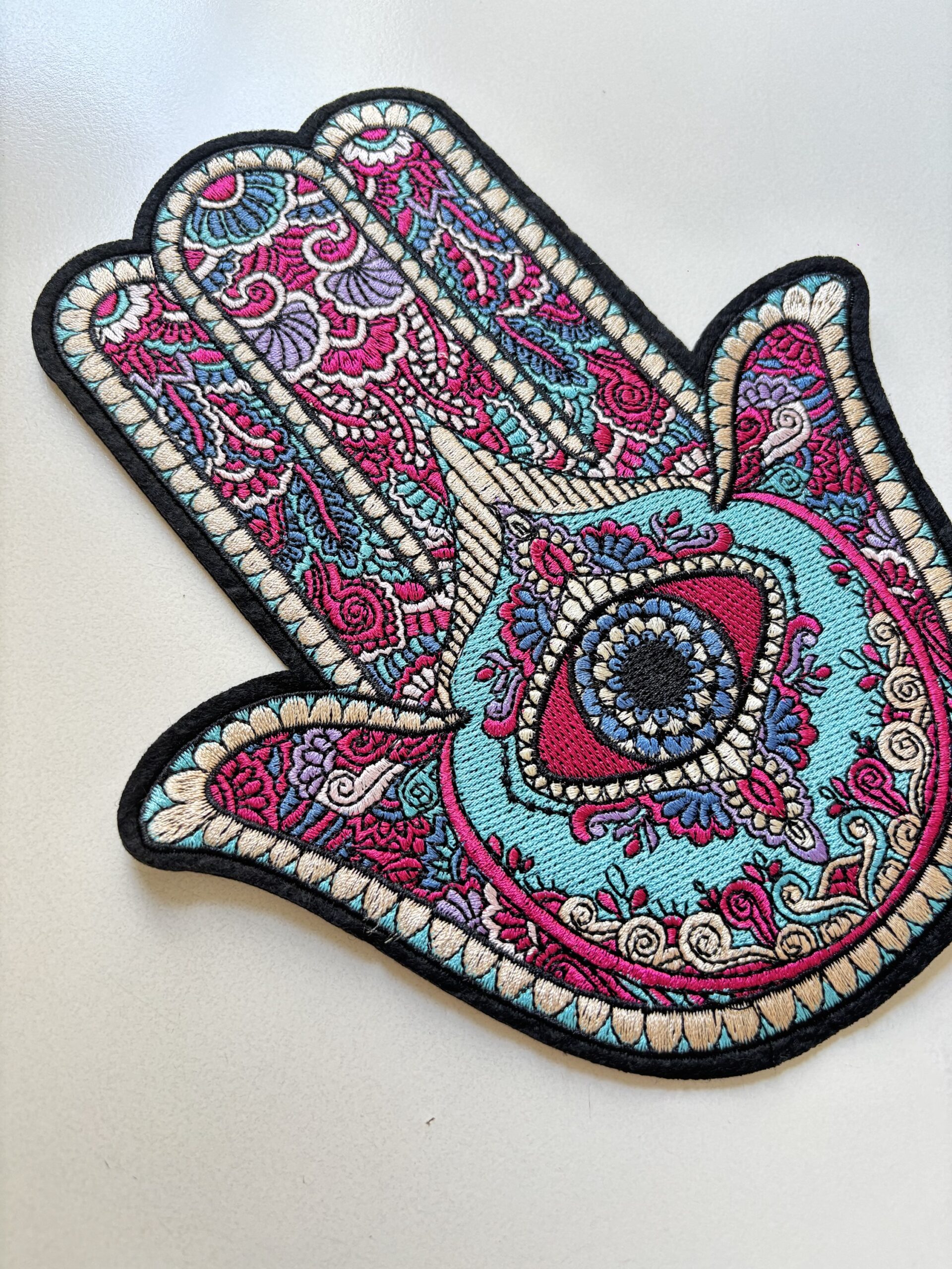 Aplique manito bordado en hilo para pegar con el calor de la plancha.