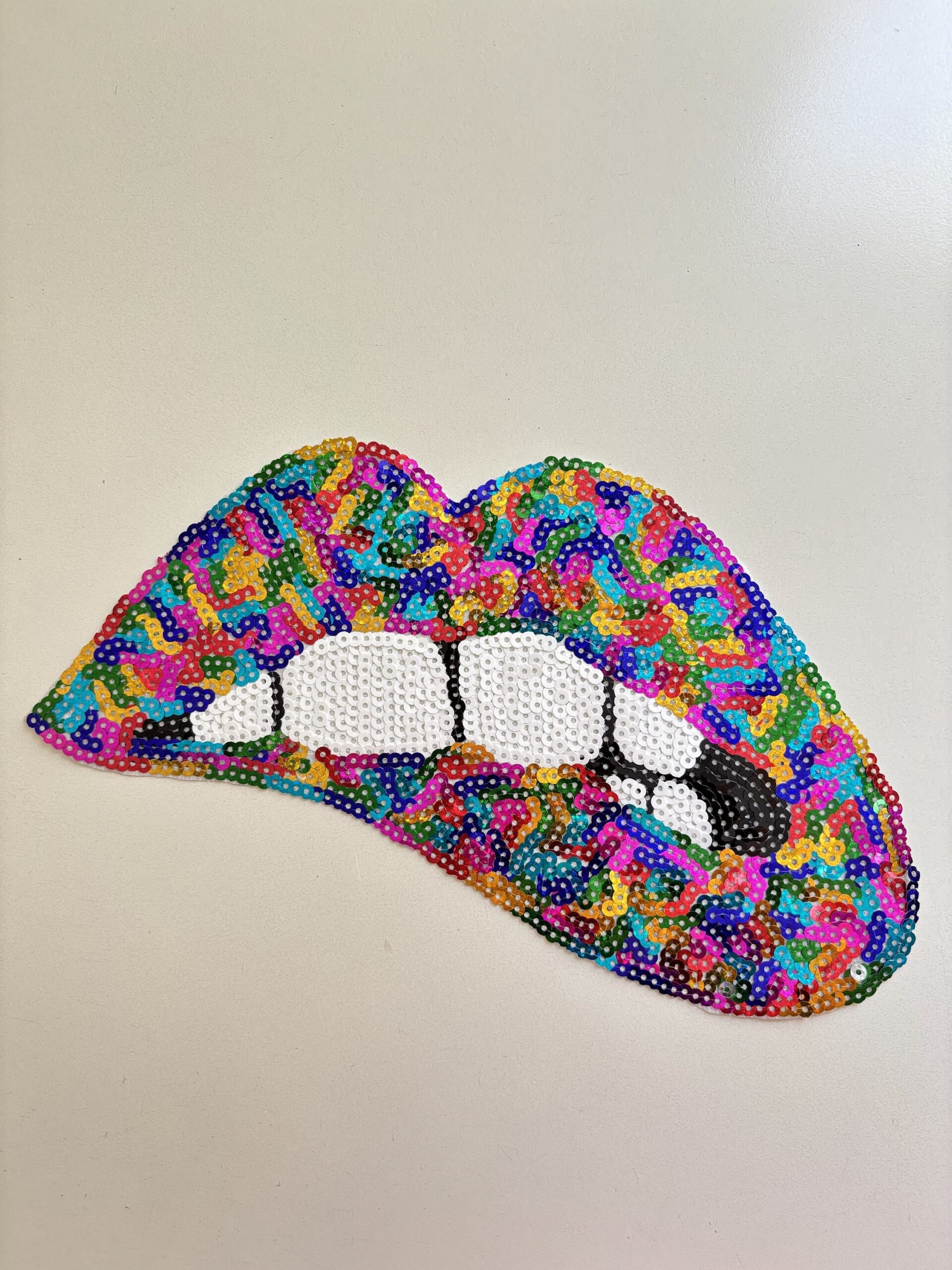 Aplique en lentejuelas, podés pegarlo con el calor de la plancha.