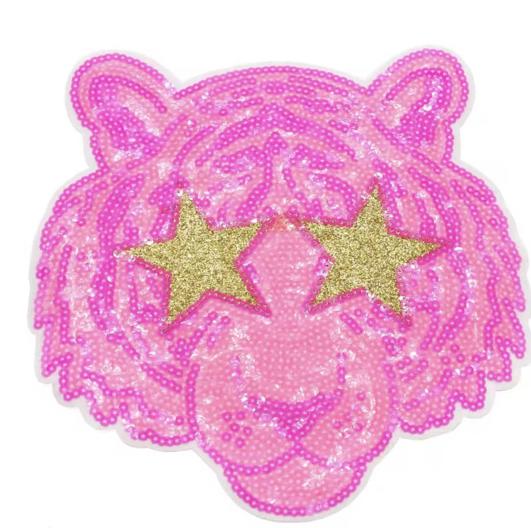 Tigre en lentejas, ojos estrellas doradas brillantes.